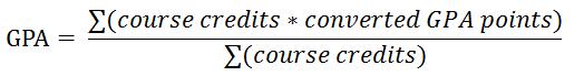 附件为GPA计算模板,供学生国际交流使用。GPA计算参考学校统一计算方法,下载后根据相应版本的个人成绩单(自助打印机打印版)进行修改,百分制与GPA分数的转换规则以及计算方法分别见下表和下方公式。模板中提供计算示例。修改并确认无误后携带原版个人成绩单及电子文档至敦品楼201服务大厅进行打印盖章(也可以将电子文档发送至 zyao@ncut.edu.cn)。