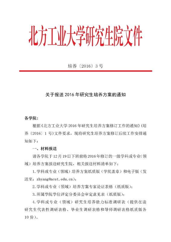 关于报送2016年研究生培养方案的通知