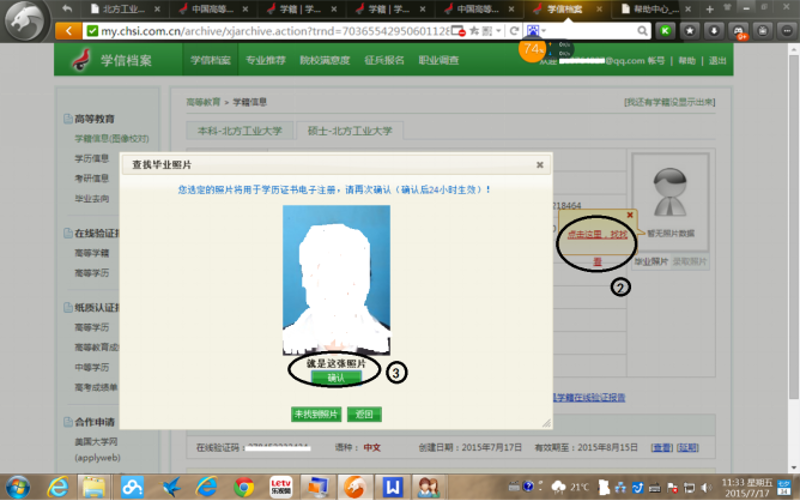 第三步:点击确认本人毕业照片,根据网站提示“确认后24小时生效”。