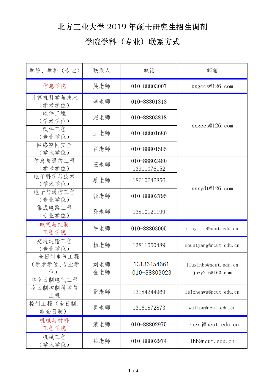 bevictor伟德2019年硕士研究生招生调剂学院、学科(专业)联系方式