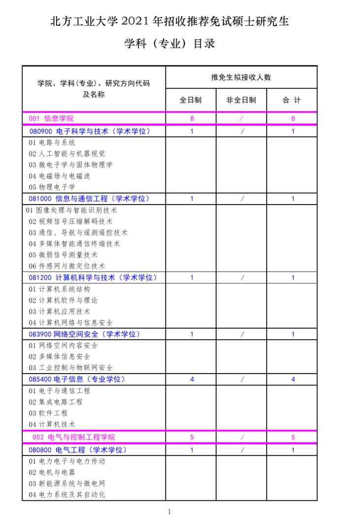 bevictor伟德2021年招收推荐免试硕士研究生学科(专业)目录