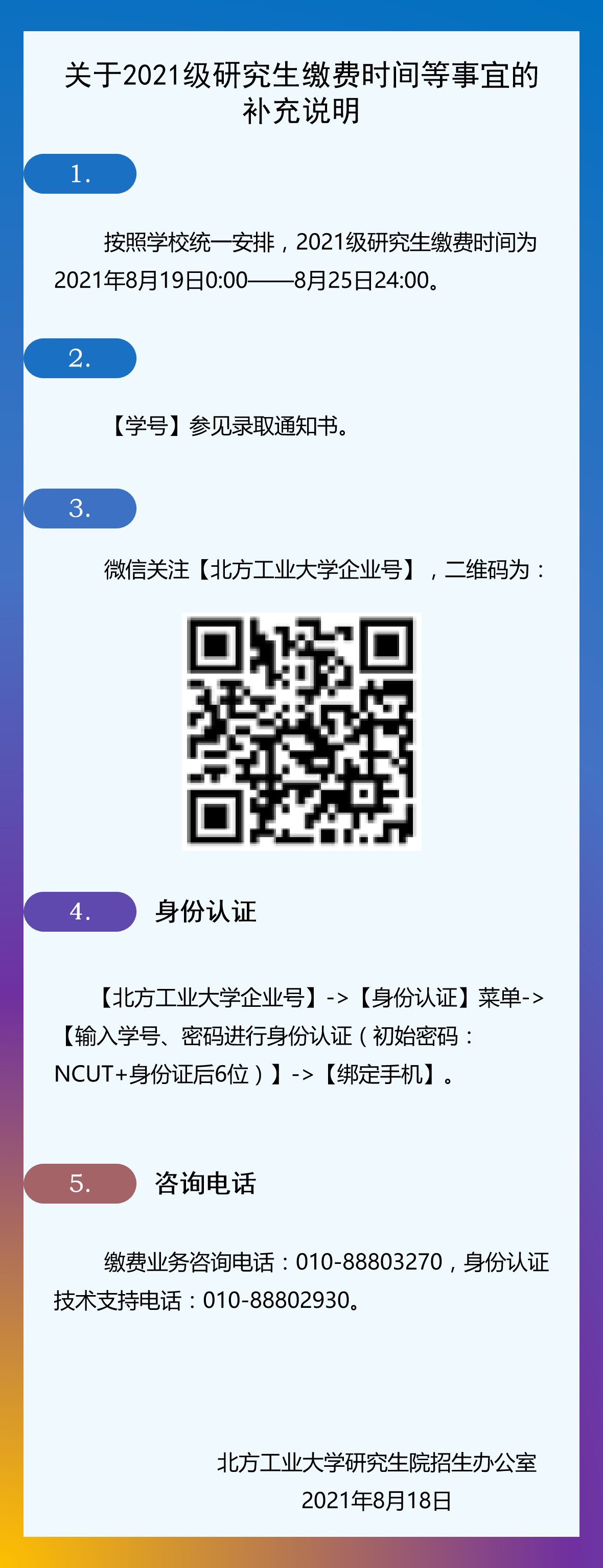 关于2021级研究生缴费时间等事宜的补充说明