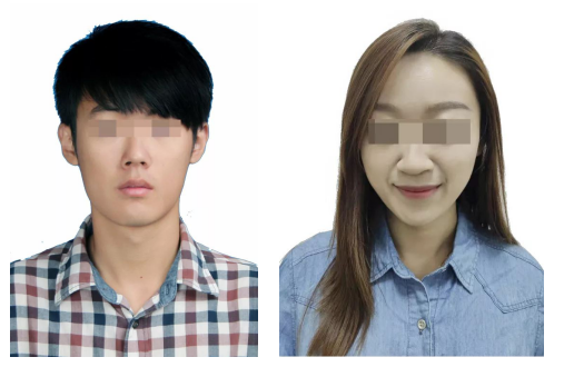(5)脸部无遮挡,头发不得遮挡脸部、眼睛、眉毛、耳朵或造成阴影,要露出五官。