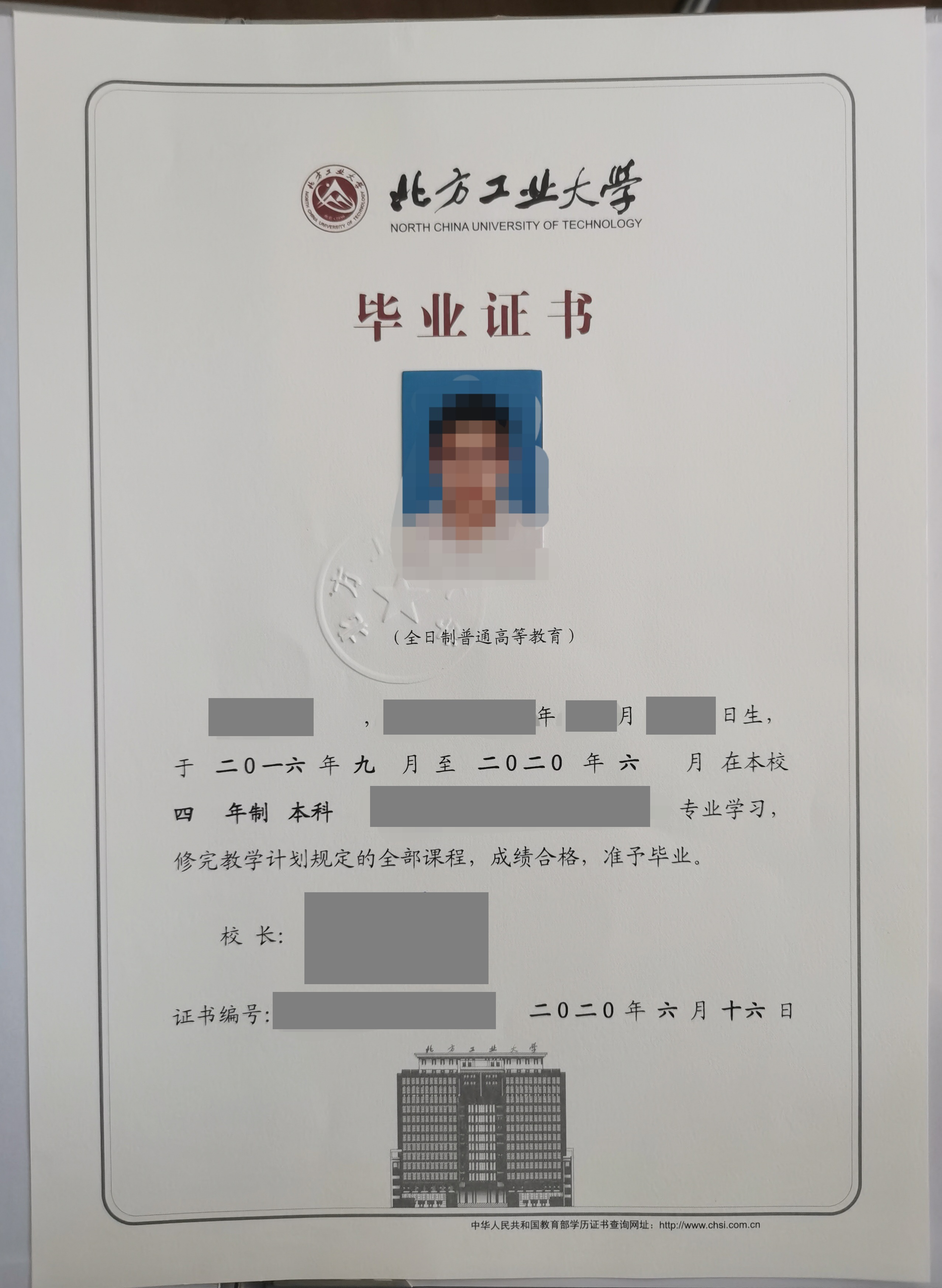 学历证书样图