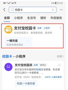 (1)支付宝充值:打开支付宝搜索“校园卡”或“校园派”,选择“支付宝校园卡”,如图所示, 选择bevictor伟德,输入姓名、学号进行支付,支付成功后等2分钟自动到账,可在支付宝校园卡查询余额。