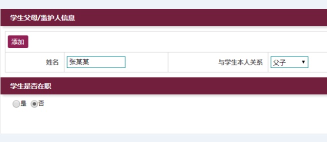 图二 学生父母/监护人信息填报页面