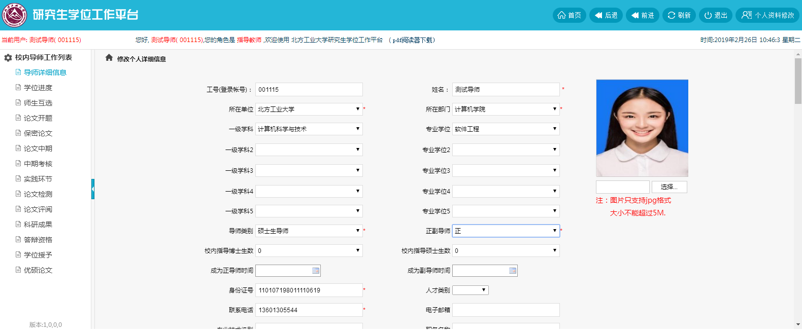 目前平台中的信息及照片是从原有导师信息服务系统中逐项导入的,内容可能有疏漏,个别导师照片因格式问题未能导入,希望导师可以根据实际情况核实并增补信息,照片(一寸电子照片)原则上为蓝色背景的个人照,重新上传即可修改原有照片。
