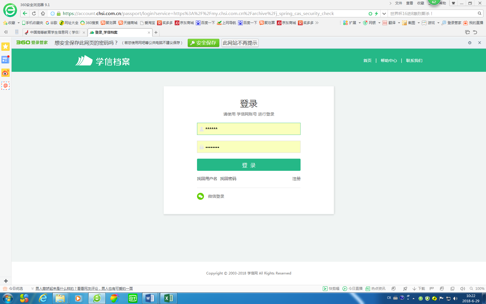 图一个人学信档案登录界面