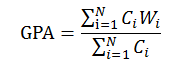 其中,Ci与Wi分别为单科课程学分、单科课程百分制成绩对应的绩点;N为参与GPA计算的百分制课程总数。