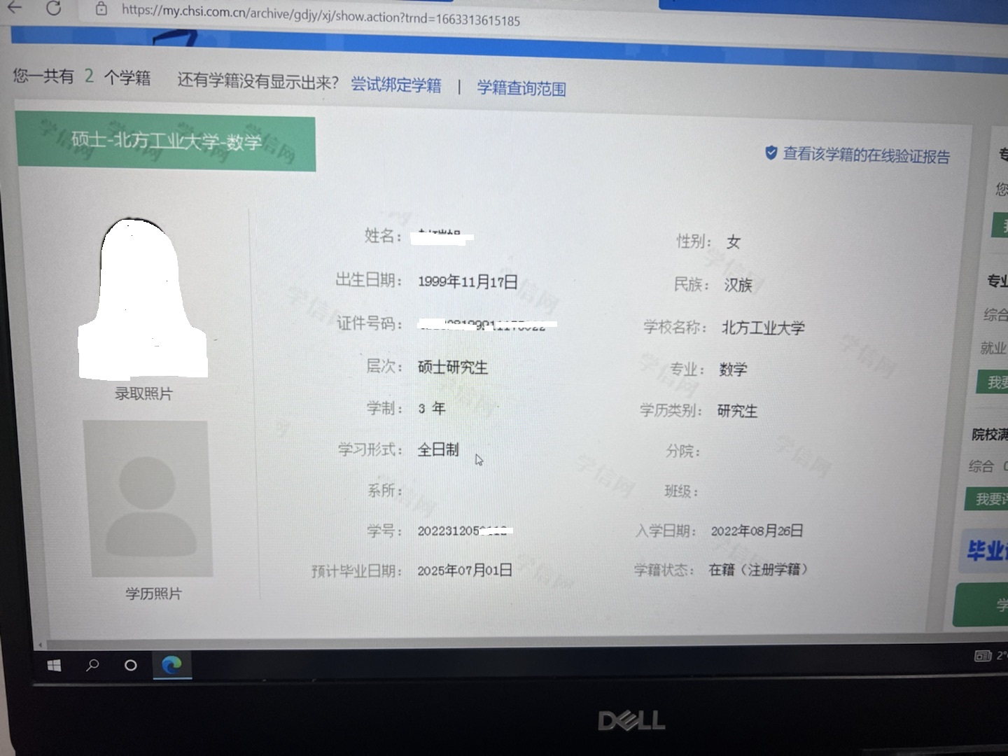 图2 个人学籍查询页面