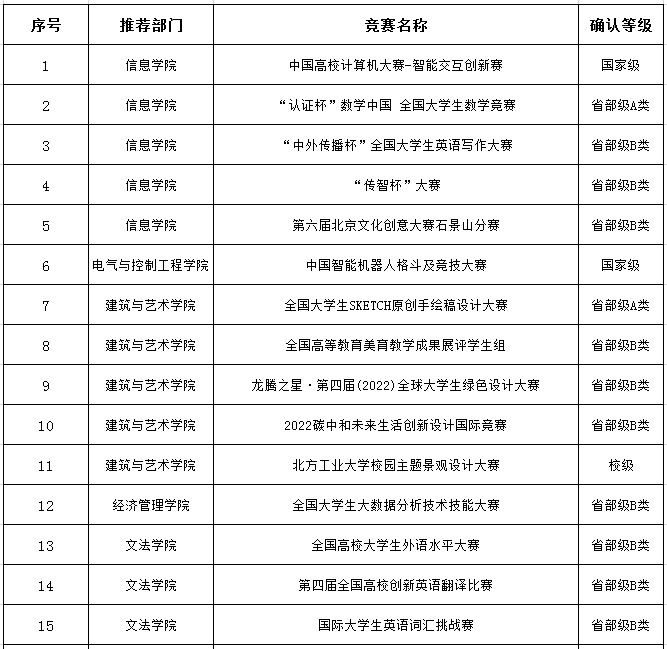表1 2023年第一批次新增研究生学科竞赛项目推荐情况汇总表