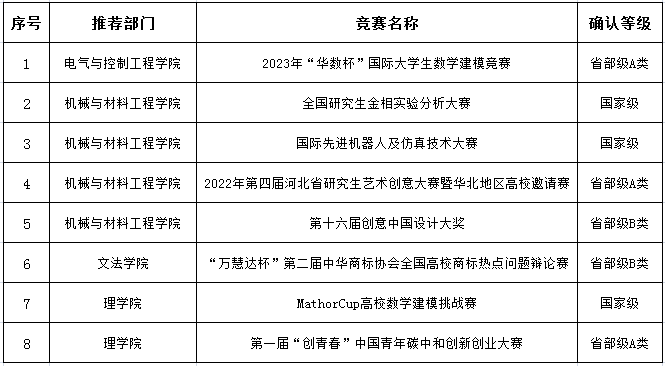 经参赛指导教师申请,学院审核,研究生院根据《bevictor伟德学科竞赛管理实施办法》(校办发〔2019〕8号)公布研究生学科竞赛等级,其中,国家级学科竞赛3项,省部级A类学科竞赛3项,省部级B类学科竞赛2项,具体情况见表1。
