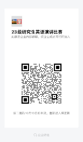 2.若本学期班级课表中没有《研究生英语I》的同学,可通过企业微信扫码进群,线上报名需提供姓名、学号、专业和手机号。