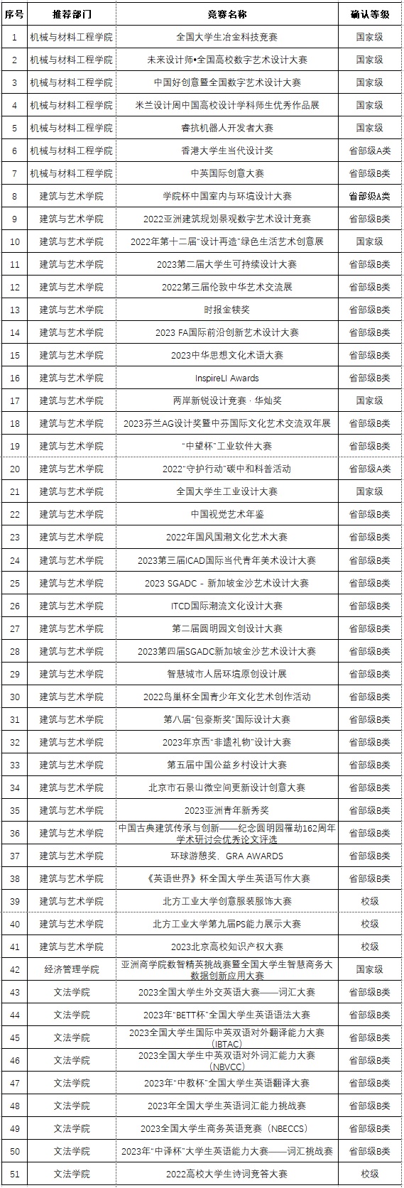 经参赛指导教师申请,学院审核,研究生院根据《bevictor伟德学科竞赛管理实施办法》(校办发〔2019〕8号)公布研究生学科竞赛等级,其中,国家级学科竞赛9项,省部级A类学科竞赛3项,省部级B类学科竞赛35项,校级学科竞赛4项,具体情况见表1。