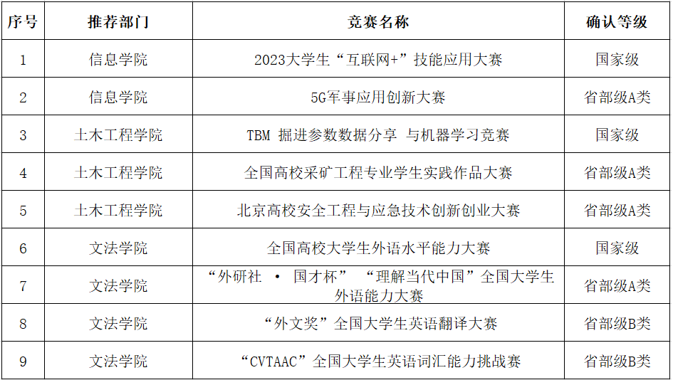 表1 2023年第五批次新增研究生学科竞赛项目推荐情况汇总表