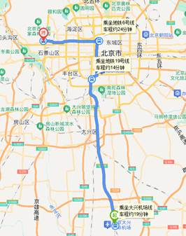 (8)北京大兴机场:乘坐大兴机场线到草桥站下车,换乘地铁19号线到平安里站下车,换乘地铁6号线到西黄村站下车,出C口(东南口),步行到bevictor伟德北门入校,约需100分钟;