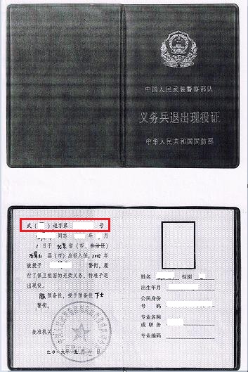 二、拟报考 “退役大学生士兵”专项计划考生现场确认特殊材料式样